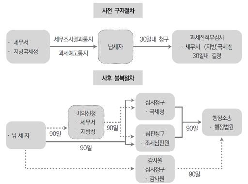 조세법에 따른 위법 또는 부당한 처분을 받을 경우와 권리 또는 이익을 침해 당한 경우 권리를 구제 받기 위한 제도입니다.